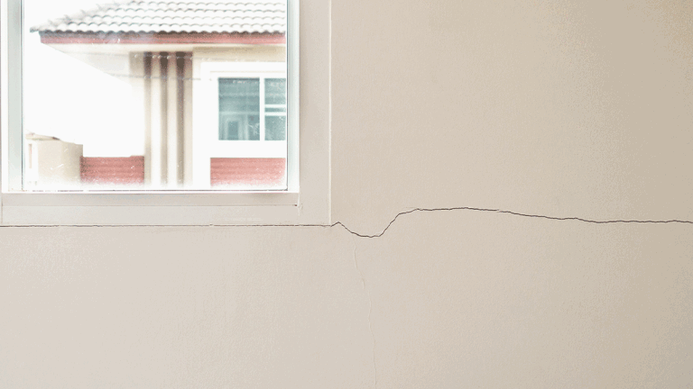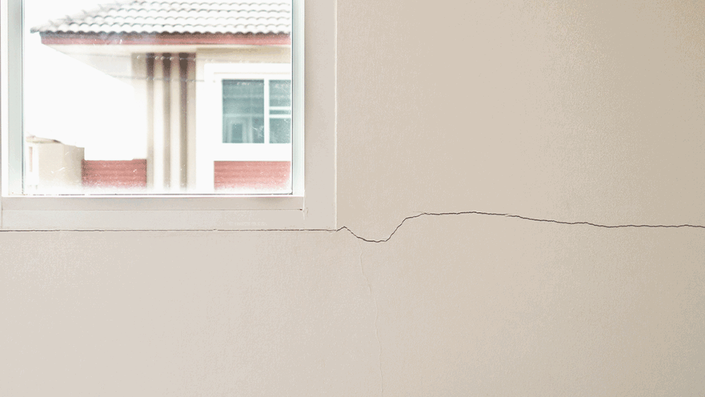 Cracks in walls, ceilings, floors or around window frames.